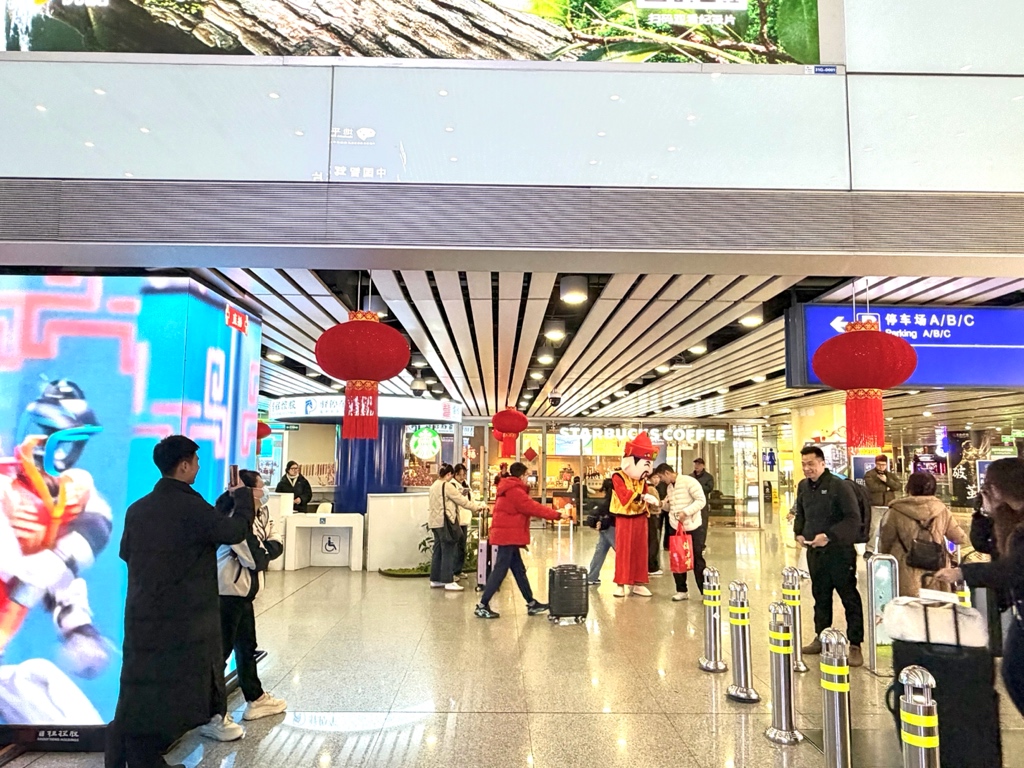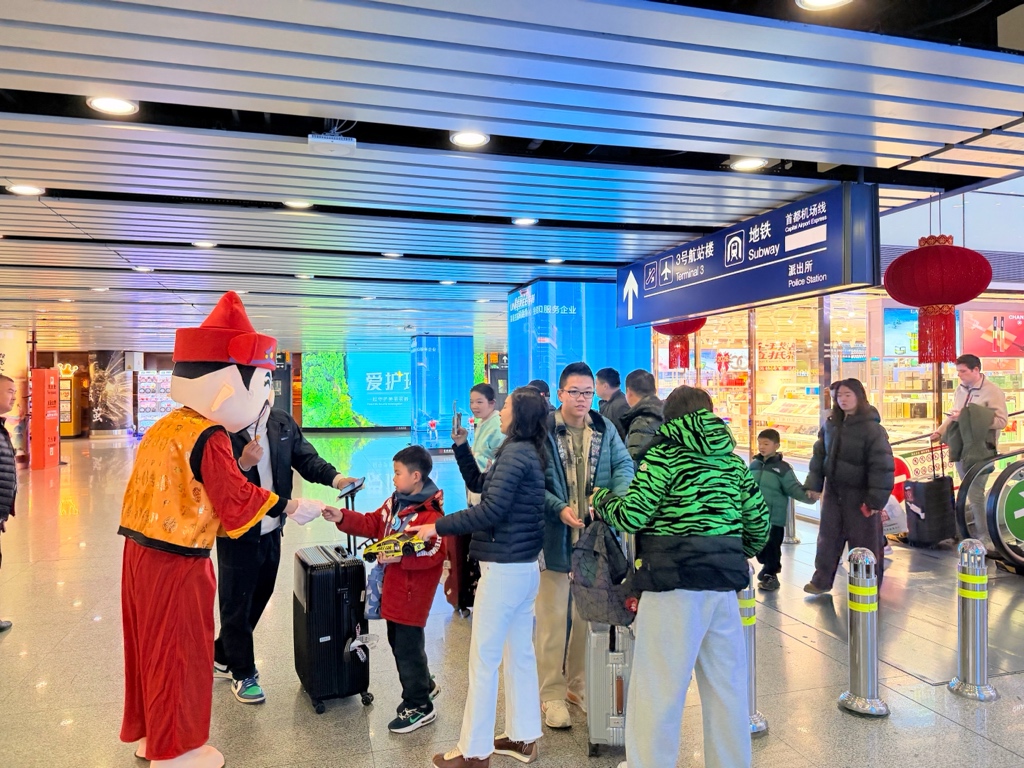落地首都机场,T3停车楼里遇见了财神爷,非常惊喜。停车楼商业做的真好,还有星巴克和免税化妆品,广告是宇树上春晚的画面,首程控股也投资了宇树,真是YYDS[强][强][强]