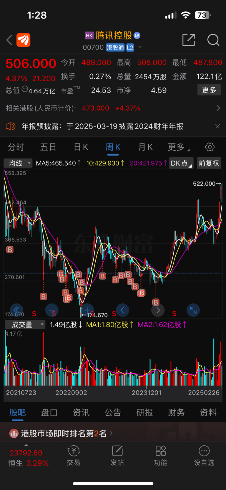 $腾讯控股(HK|00700)$ 这么涨今年还会回购吗?折算一下转为分红吧