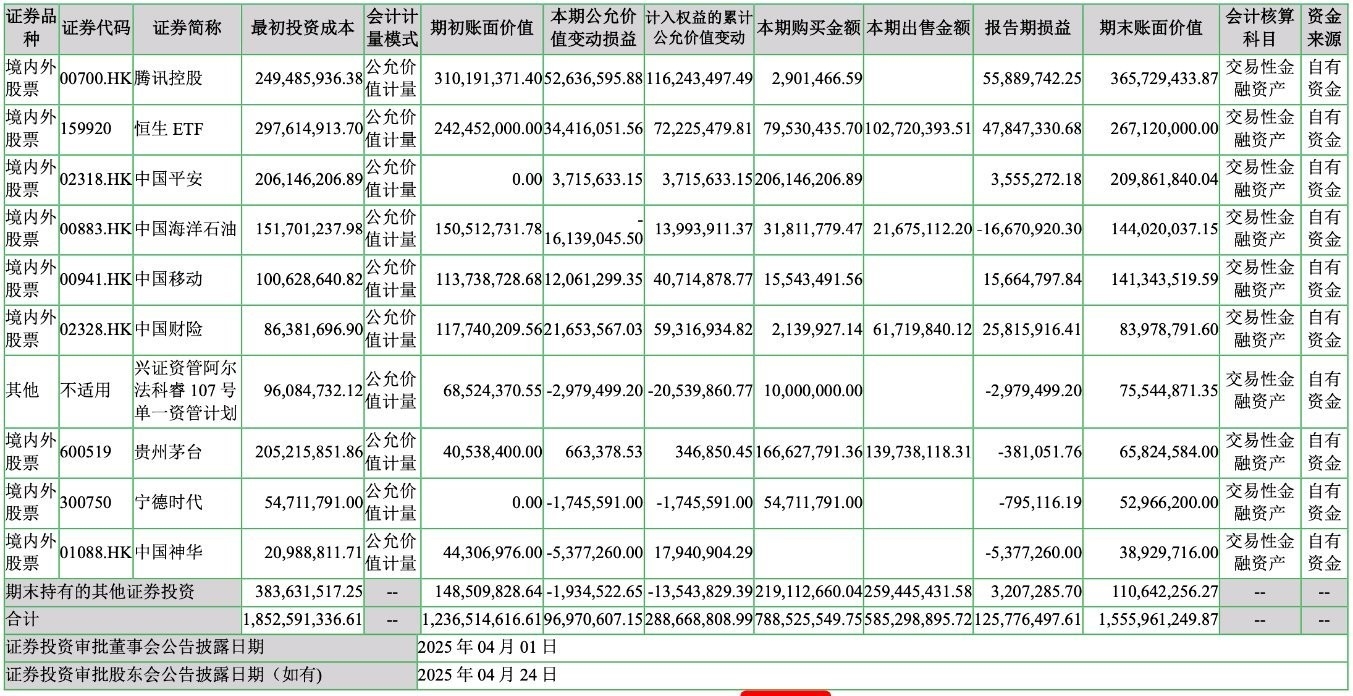 除通过深创投广泛布局外,集团还通过自有平台直投了最硬核的战略资产——科益虹源(光刻机光源),并参股沐曦集成等。值得注意的是,基于公司2025年中报数据,其证券投资组合表现突出,腾讯控股等核心标的贡献显著投资收益,结合三季度市场表现,预计将对公司业绩产生积极影响。
