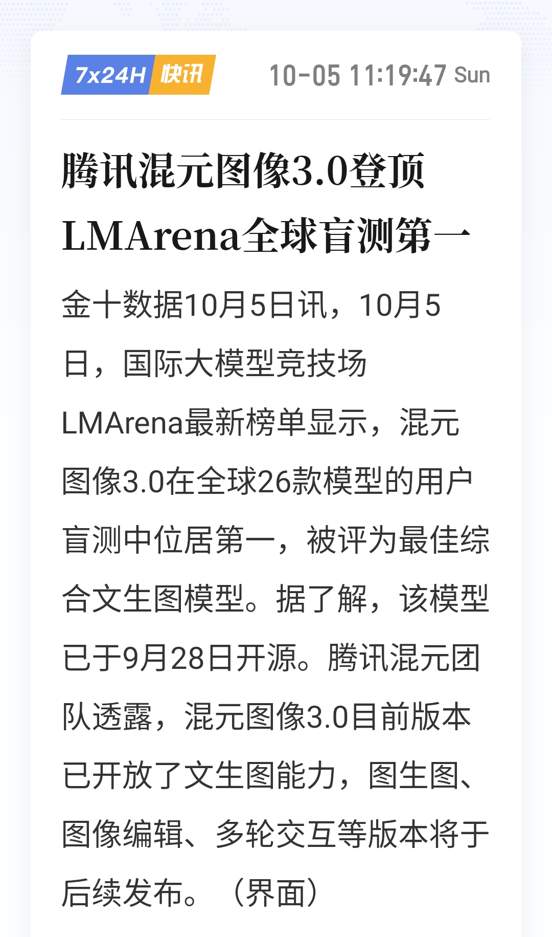 #股市怎么看# $腾讯控股(HK|00700)$ 腾讯混元图像3.0登顶LMArena全球盲测第一。