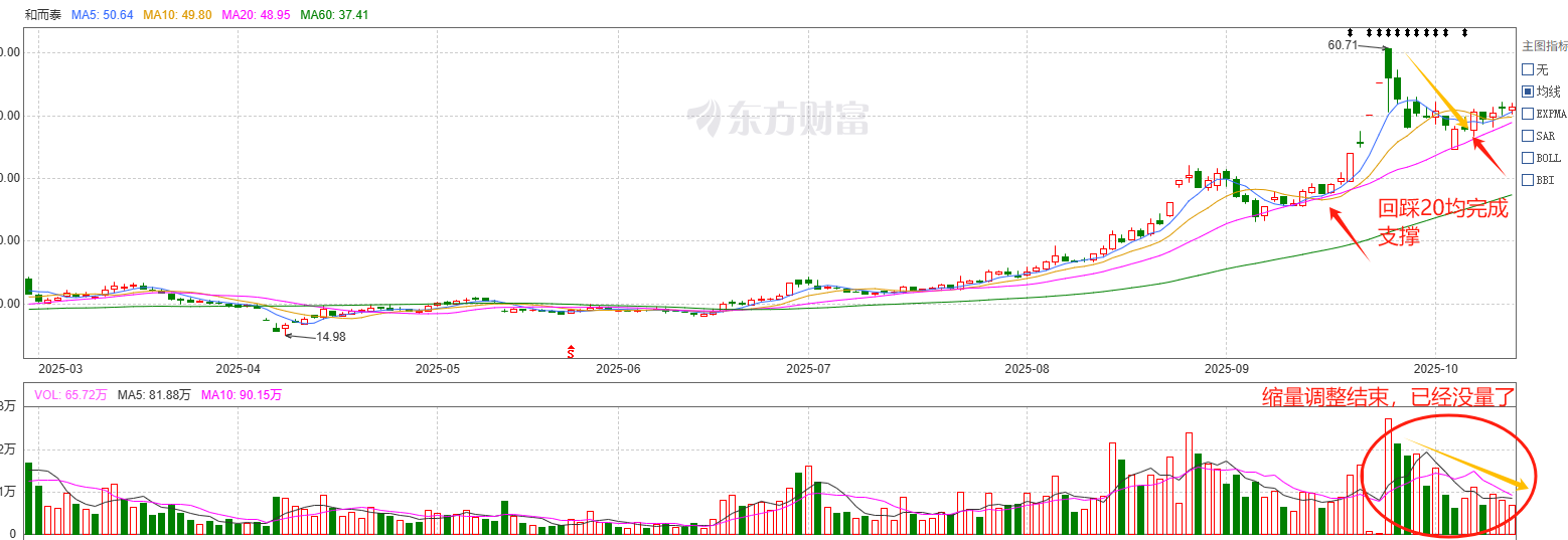 和而泰002402:参G摩尔线程;前面是缩量调整,目前已经缩到地量附近了,加上回踩20均有支撑,所以这里短期是比较安全的,只是向上突破的时间快慢问题。如果这里不破5均的话,向上甚至有望破一下前高的。
