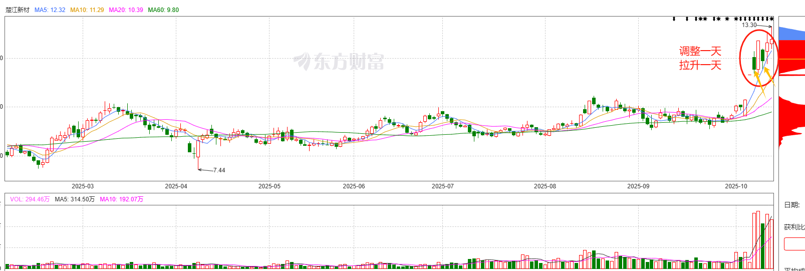 楚江新材002171:核聚变以及业绩增长,业绩类型的一般能过表现的高度不是很高,但是核电板块里他是一路边调边上行的,所以今天要么直接反包掉前面的上影线新高。要么今天再度回踩5均,不过今天要是还下主动回踩5均那就是弱了。强势的表现是小低开然后拉升之后5日线自动会上移。所以今天不新高就要撤了。