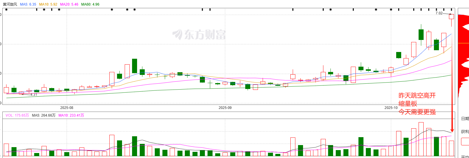 黄河旋风600172:培育钻石方向,由于昨天是跳空高开的,而且缩量上板,这就是一致性,既然一致了那么今天应该需要更强才对,反之,则不符合预期,最基本的高开是需要的,但是高开之后需要继续缩量快速上板才能留或者出T板,否则今天是要撤的。