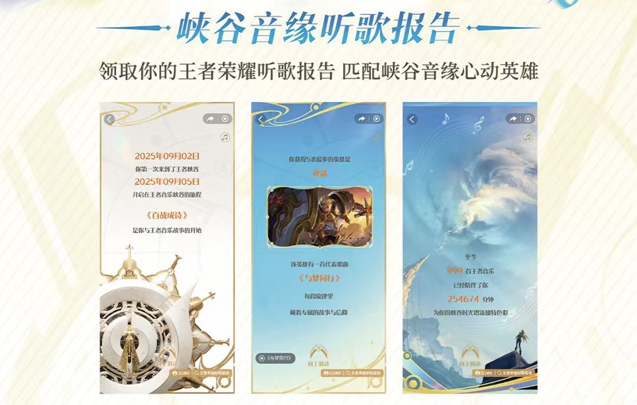 在QQ音乐二十周年和王者荣耀十周年之际,QQ音乐今天上线“王者荣耀音乐听歌报告”特别企划活动,基于游戏和音乐数据回溯用户过往十年和王者荣耀的音乐连接,参与活动即可开启一段峡谷音缘与福利狂欢。