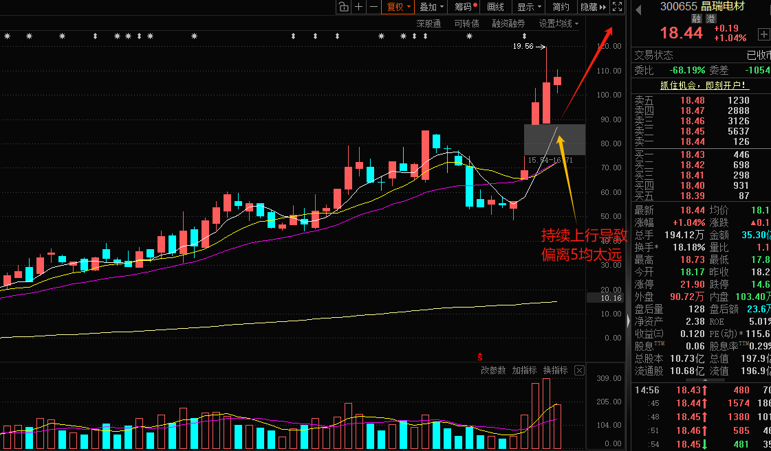 晶瑞电材300655:存储方向以及光K胶方向。在高纯电子化学品方面,公司已跻身国际最先进水平,成为全球范围内同时掌握半D体级高纯双氧水、高纯硫酸、高纯氨水三项技术的少数几家企业之一,另外公司2021年购入的ArF光K机现处于设备调试阶段,将用于研发90-28nm先J制程的ArF光K胶,有望突破新的技术壁垒。加之业绩也不错,这里持续的上升之后已经偏离了5均蛮多了,所以昨天出现了缩量日内分歧。这种良性分歧就类似蓄力,所以今明两天大概率还有一根大阳出现。