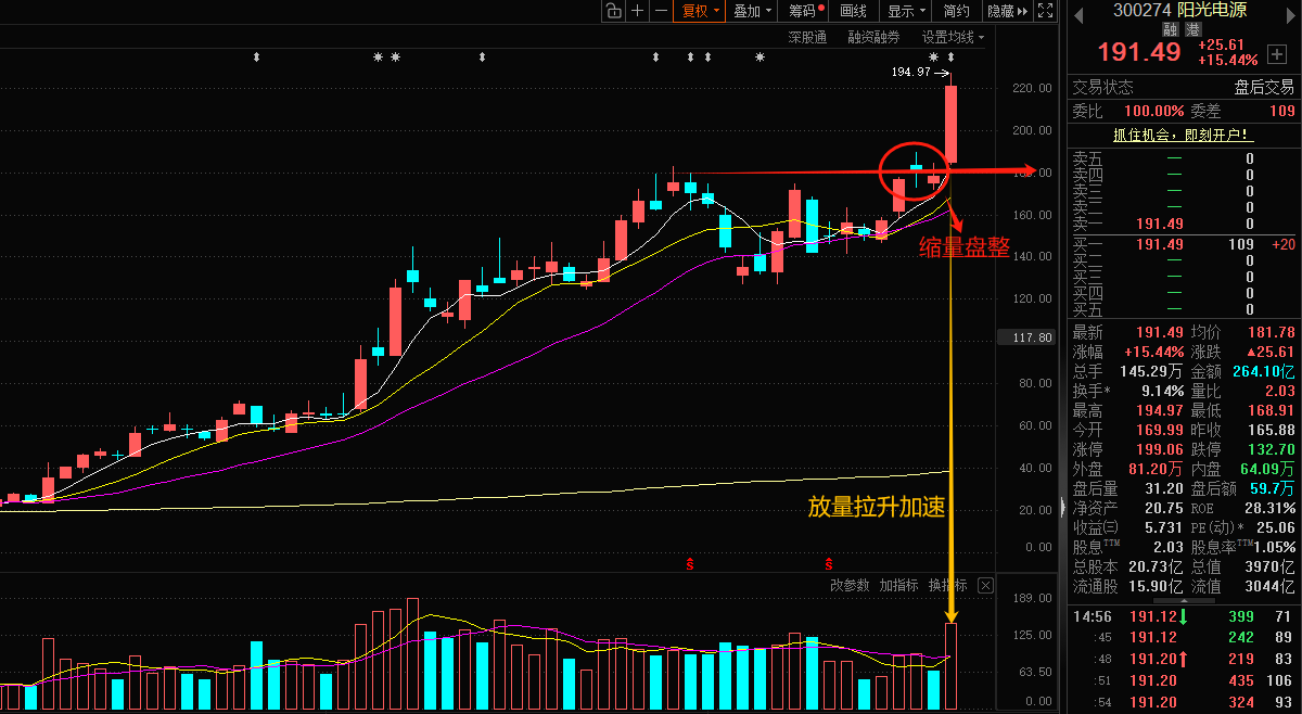 阳光电源300274:从客观角度而言,一个标的如果在主升当中,那么高度没法预料,所以我们能做的就是知足。昨天已经开始加速了,如果今天再度冲高甚至高过10%那就要减掉一半。目前已经有比较厚的安全垫了,随时处理掉。公司基于光伏逆变器应用开发了全球首台35KV直挂的光伏逆变器,基于光储充应用的多端口SST能量路由器,后期会持续研究和开发该技术的相关应用。