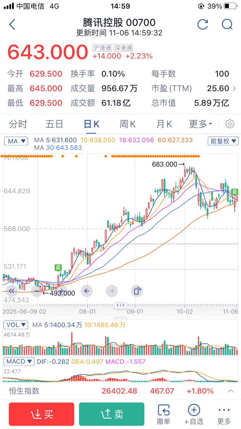 $腾讯控股(HK|00700)$ 我又卖在启动点了吗