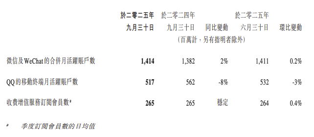 腾讯控股:三季度末微信及WeChat合并月活跃账户数达14.14亿