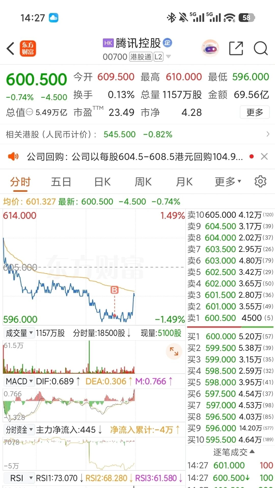 今日加仓腾讯