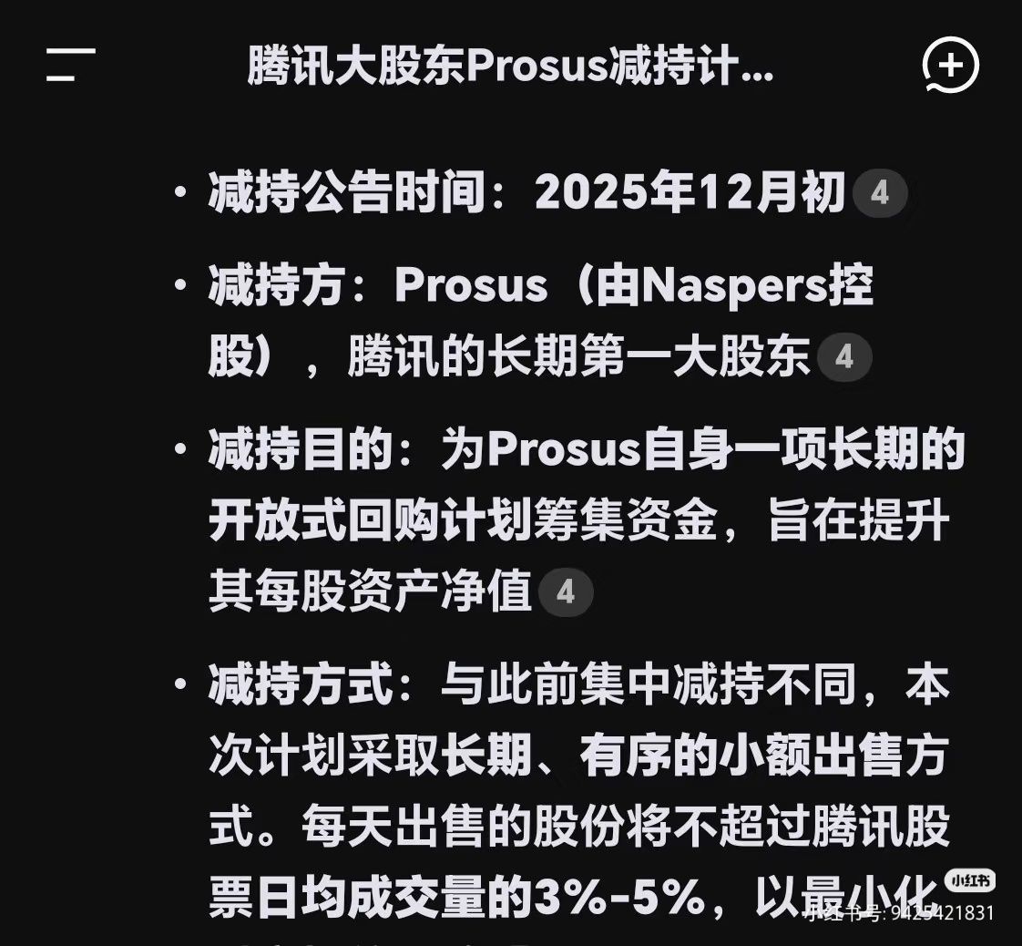 $腾讯控股(HK|00700)$ 大股东将持续减持,股价持续下跌