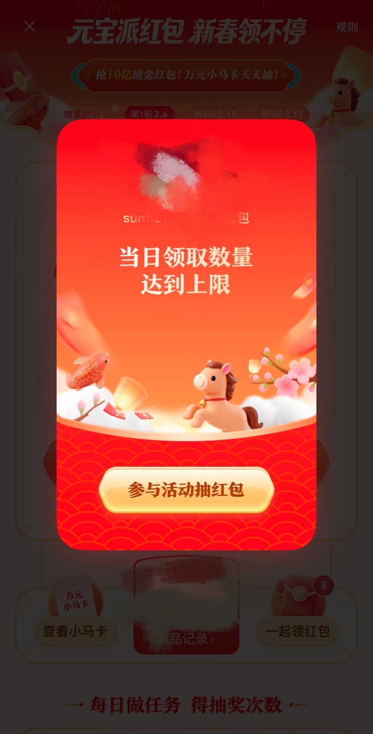 程昕说道:“领取的红包数量好像有一定限制,我已经被提示‘当日领取数量达到上限’。”