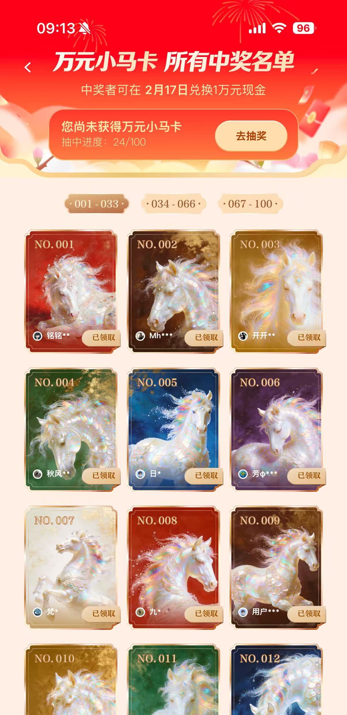 截至2月2日上午,最受关注的万元红包,100张价值万元“小马卡”已经抽出了24张,万元红包抽中者则可以在2月17日兑换现金。