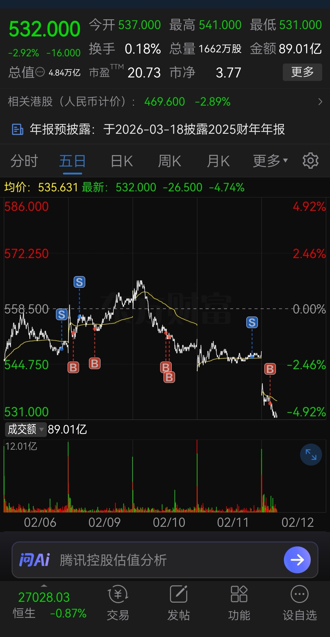 $腾讯控股(HK|00700)$ 逃都来不及今天又又没忍住