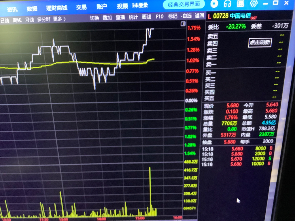 $中国电信(HK|00728)$ 大买入5317 万股一卖2387万股=大买超2930万股,和每次一样至少涨一个月至50天大行情