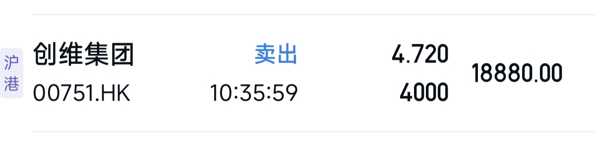 $创维集团(HK|00751)$ 4.6 买了8000股,今日完成减仓,还有4000股,赌一下还有行情!