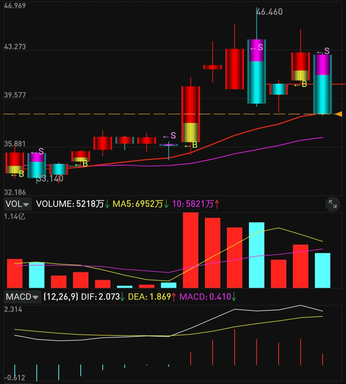 截止到目前为止,没有什么明显的利空,大家伙就不要再强行找理工了,股市下跌自然有股市的规律,要说到真的利空,那就是科技方向,长得太高了。长高了自然要回调,只不过集中回调更是一件好事。我们来到这个市场是来赚钱的,并不是来讲故事的和听故事的。今天没有按照操作系统提示进行空仓操作,说明市场的变化还是很快的,另外一个就是思想观点,情绪方面没有跟随市场,恰恰说明主观情绪的影响是非常大的,对于市场的判断及执行,情绪经常是反的,这就更说明了,建立一套精确的操作系统是多么重要!说说这么多年来总结的交易系统,今天给出的止损价格是40块6毛4,如果严格按照系统提示操作的话,损失还是可控的。今天有点情绪化,看来还是应该严格按照操作系统来执行。
