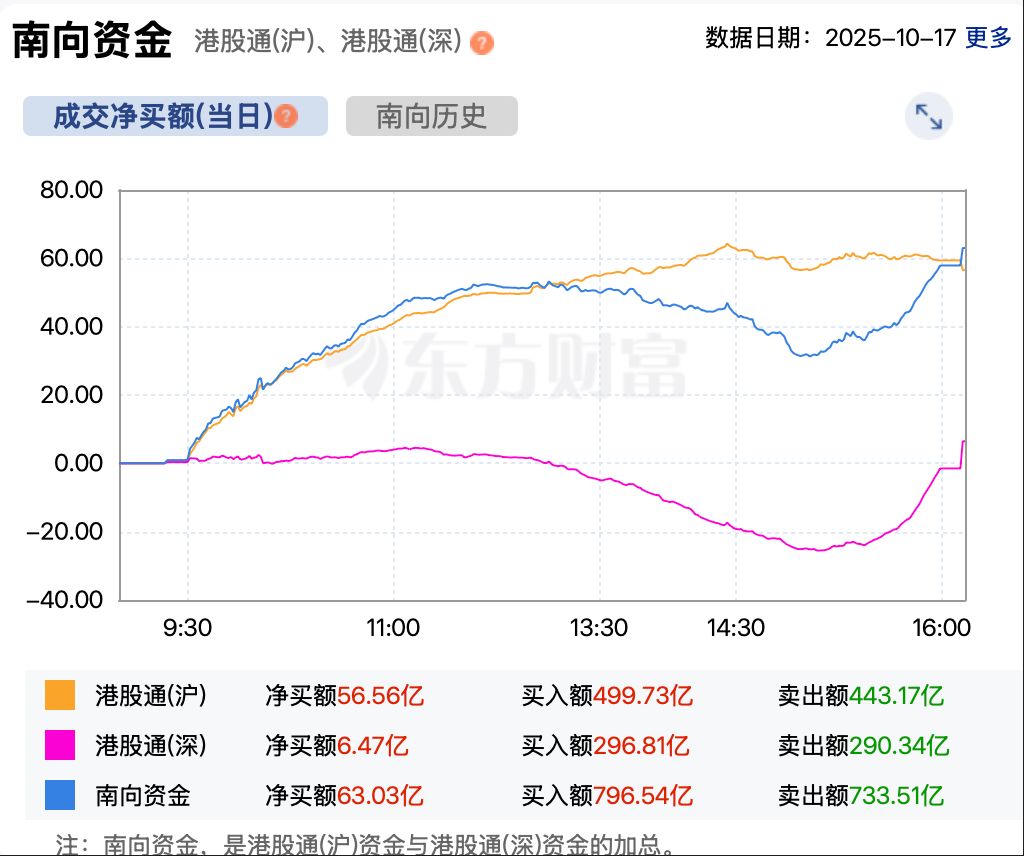 资金方面,截至收盘,南向资金净买入港股金额超63亿港元。
