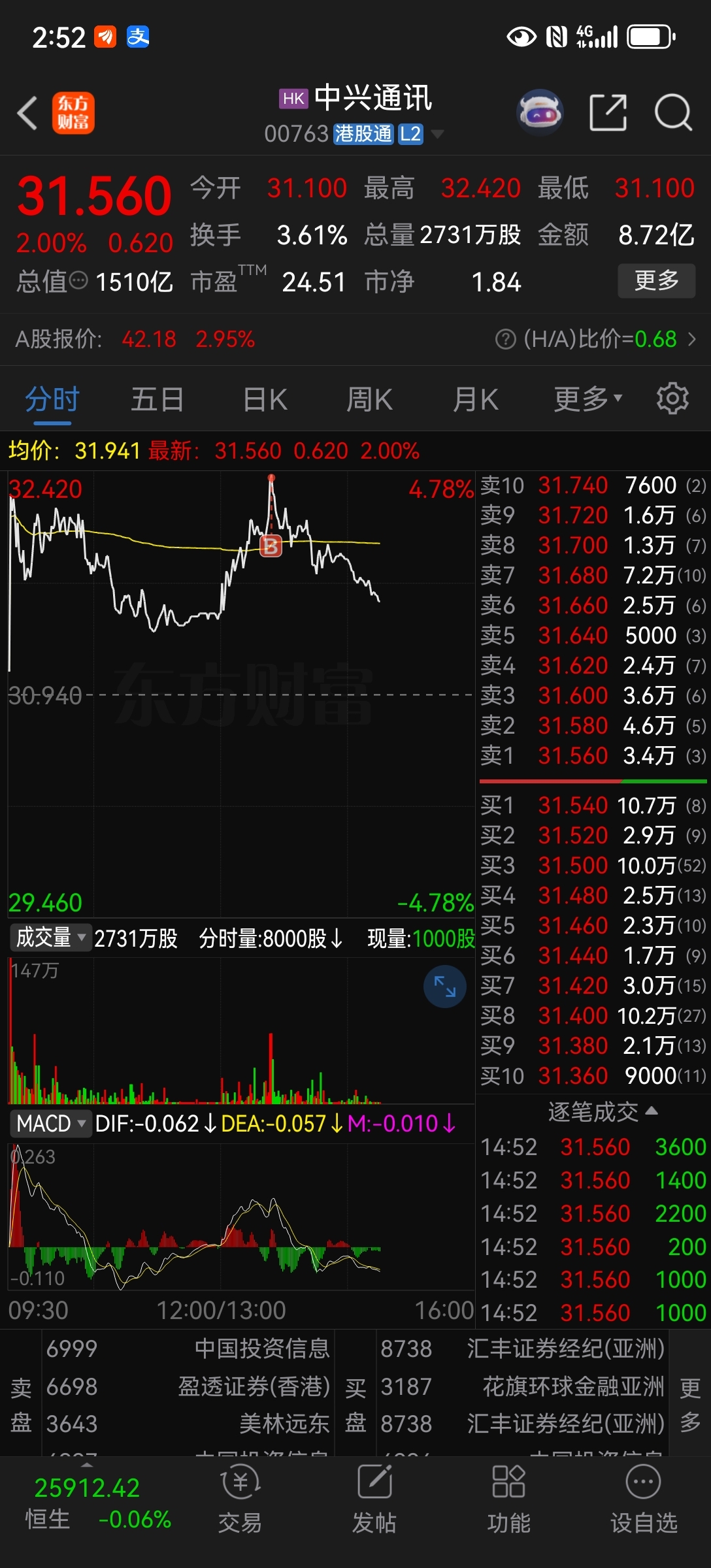 $中兴通讯(HK|00763)$ 埋在了山尖尖上