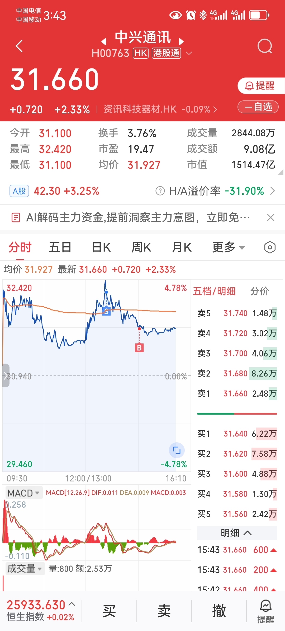 $中兴通讯(HK|00763)$ 做个T,降降成本。