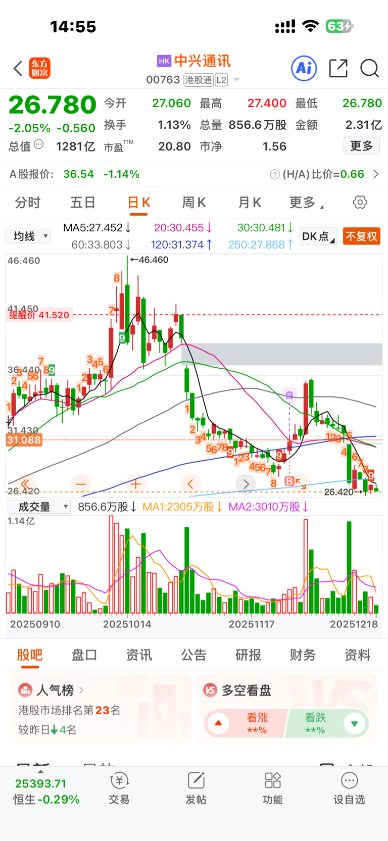 $中兴通讯(HK|00763)$ 11月26日买入3天盈利20多点没止盈,现在反亏10几点,真想抽自己几巴掌