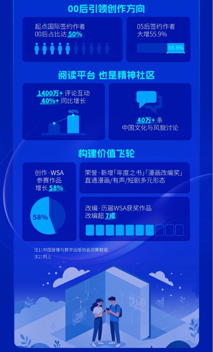 引人注目的是,全球创作力量正呈现出显著的年轻化趋势。在WebNovel的签约作者中,“00后”占比达50%,“05后”作者规模同比增长55.9%。这一生态不仅体现于创作与阅读,更演化为一个高黏性的精神家园——平台年评论互动量累计突破1400万条,同比增长40%,关于中国文化与风貌的讨论更是超过了40万条,成为文化交流的新桥梁。