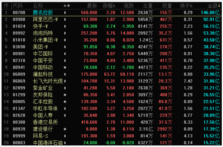 盘面上,大型科技股、大金融股(保险、券商)等权重多数活跃带领大市走俏,AI应用概念股涨幅居前,黄金股带领有色金属股齐涨;半导体股、风电股、重型机械股、濠赌股、煤炭股、餐饮股、内房股等纷纷上涨。电信、石油股下挫,三大运营商逆市受压,三桶油皆有跌幅。
