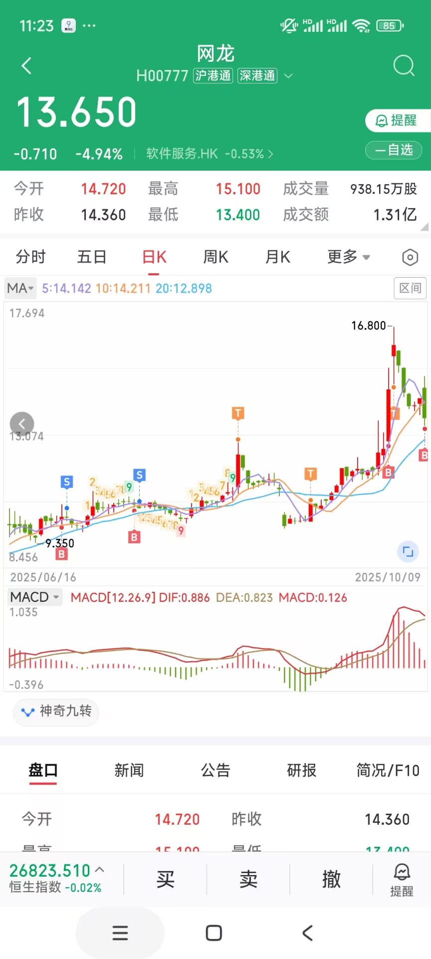 我最喜欢在网龙上来回买卖了,再次刚刚买入。