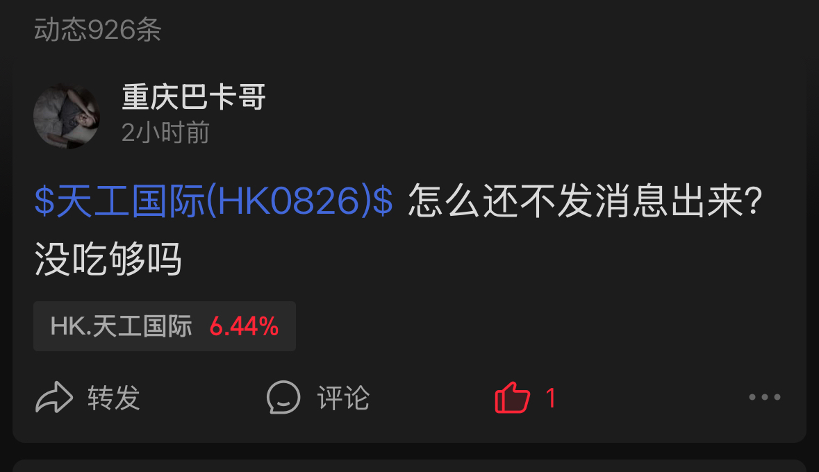 $天工国际(HK|00826)$ 同花顺找不到我发的,被屏蔽了