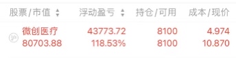 5块钱买了一点点微创,一直没有操作,准备拿到30再卖,当然也有可能跌回5元,若跌