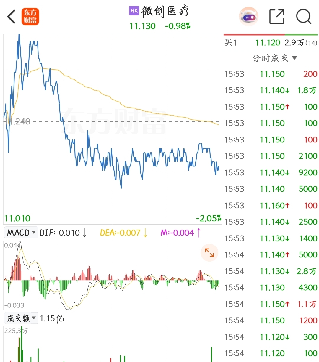 $微创医疗(HK|00853)$ 看看吧,到收盘了,几百股,也要拿出来做空,200股都敢出来砸。大家依然需要谨慎