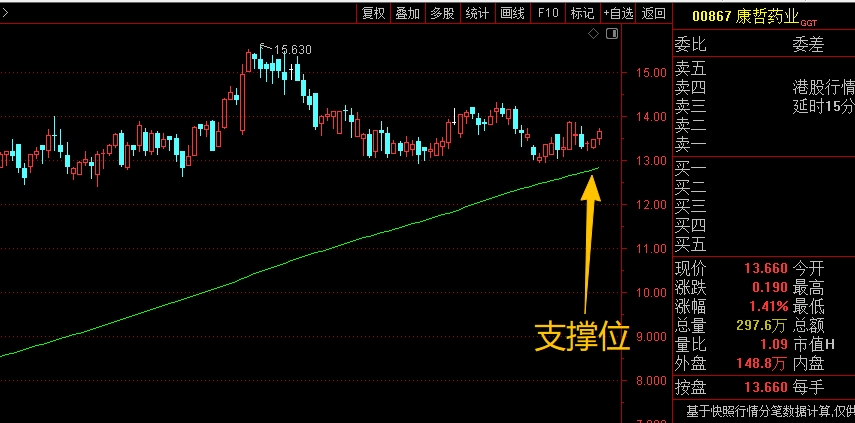 $康哲药业(HK|00867)$ $ 中期趋势比较稳健,近期的调整主要是横盘为主,短线回落没有跌破脚底大均线的支撑,所以整体看比较强,接下来观察能否继续震荡横盘或者继续拉高,回落就盯着大均线12.831位置附近做防守即可。#炒股日记# #收盘点评#