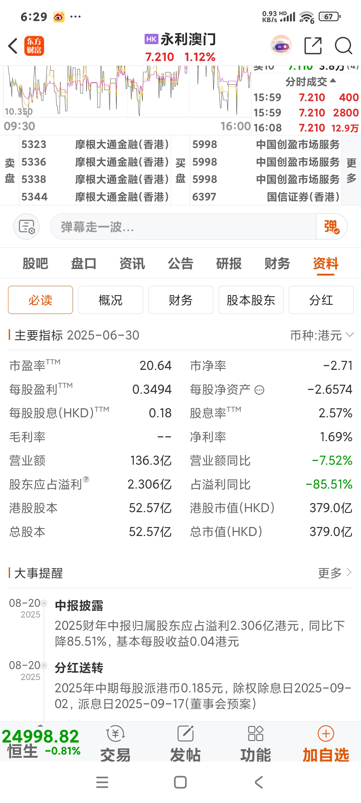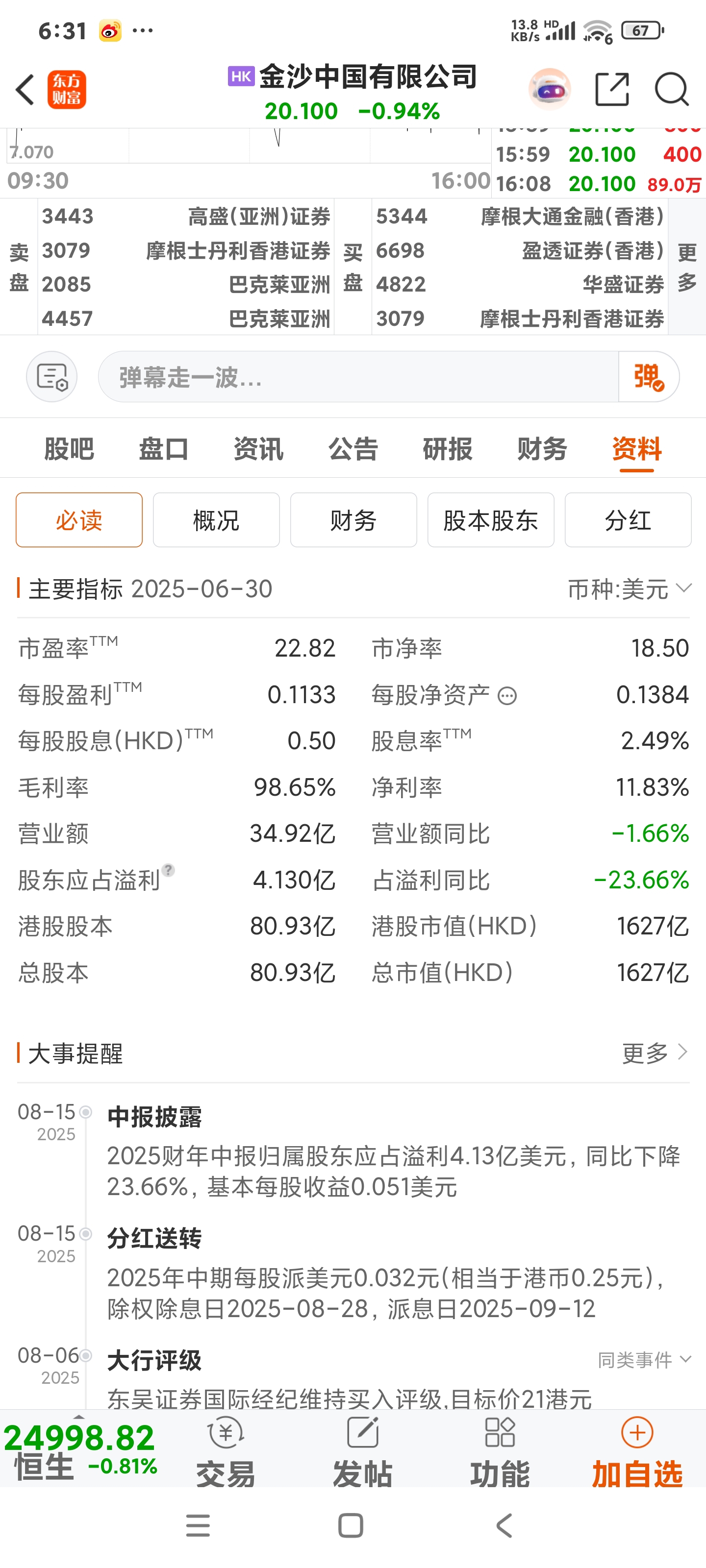 半年报 澳门公司利润普遍偏低 永利下降85% 美高梅12% 金沙降23% 澳博业绩算中规中矩 股价已经体现了公司基本面 其他公司涨幅已经非常大的