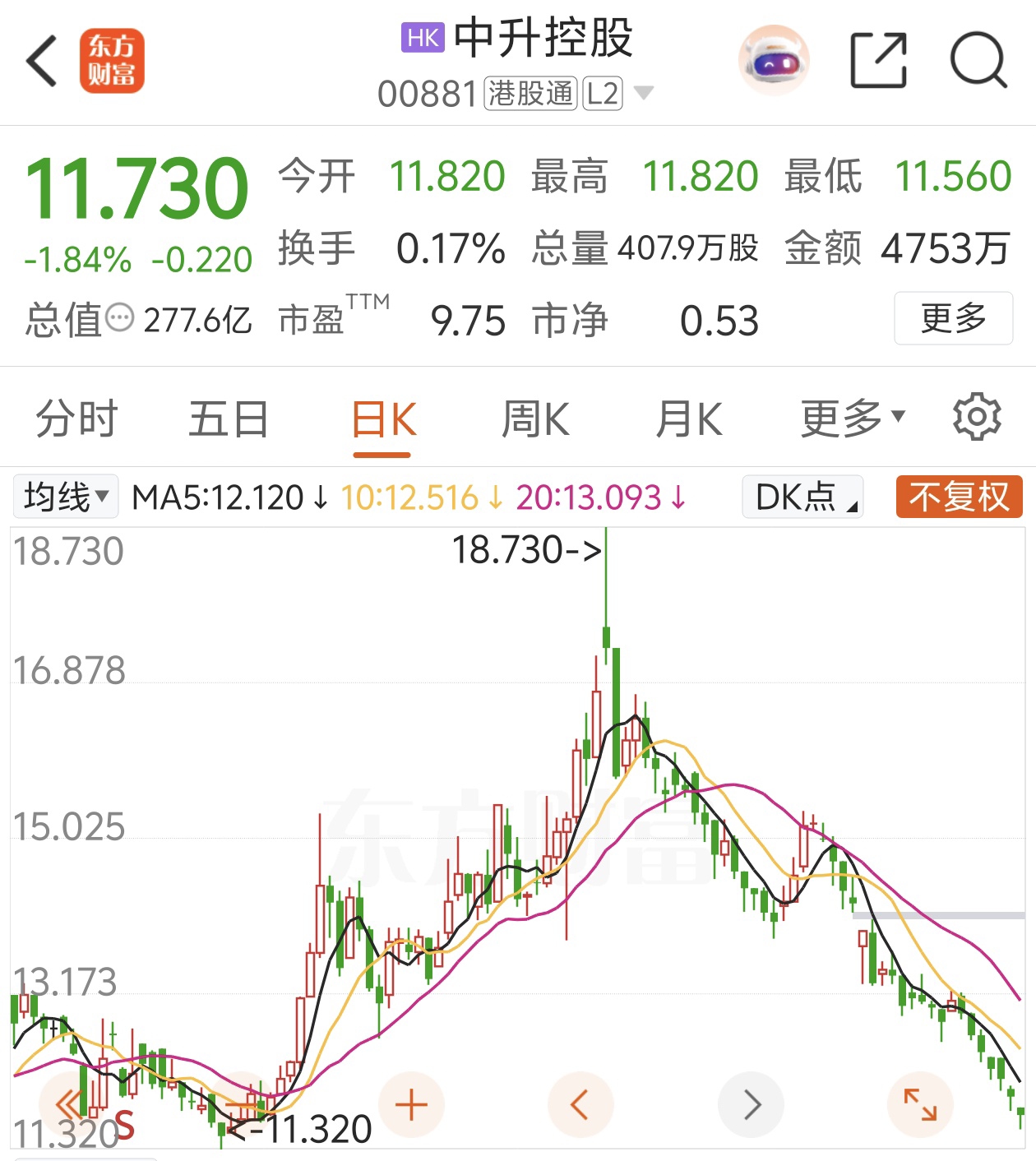 $中升控股(HK|00881)$ 这玩意跌了7元了,也没正经反弹过,牛啊!18.73-11.73