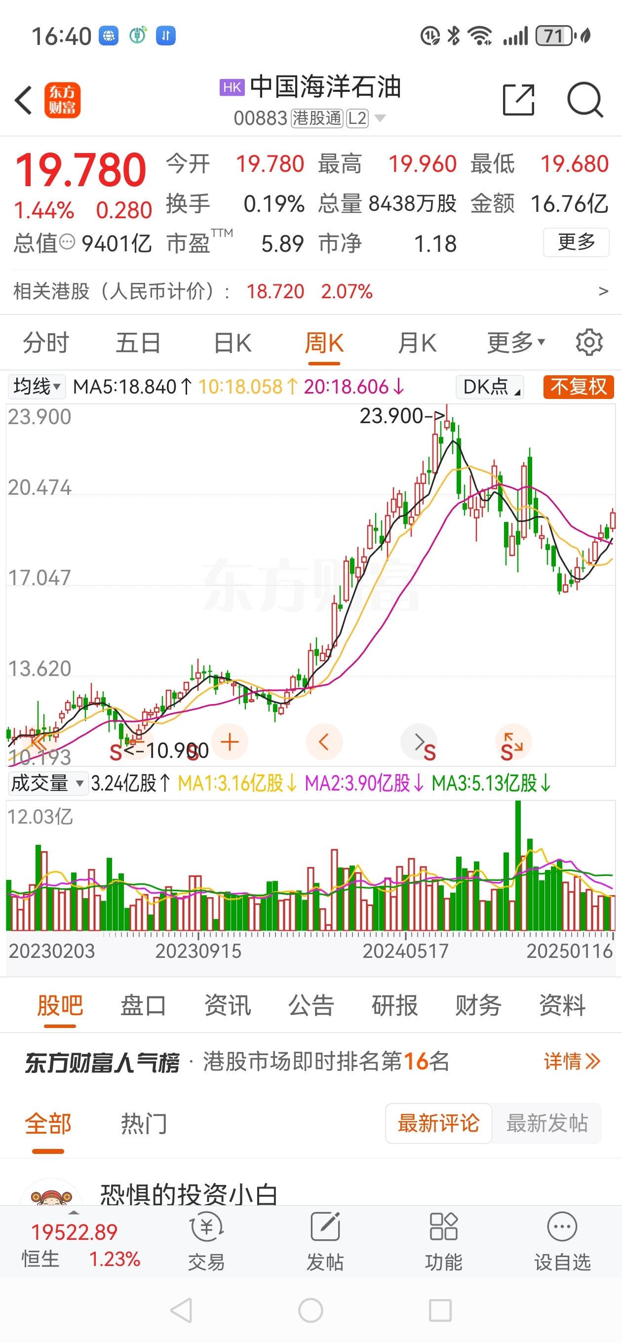 $中国海洋石油(HK|00883)$ 中国海洋石油上半年的股价目标24块。这个价含年报分红除权。