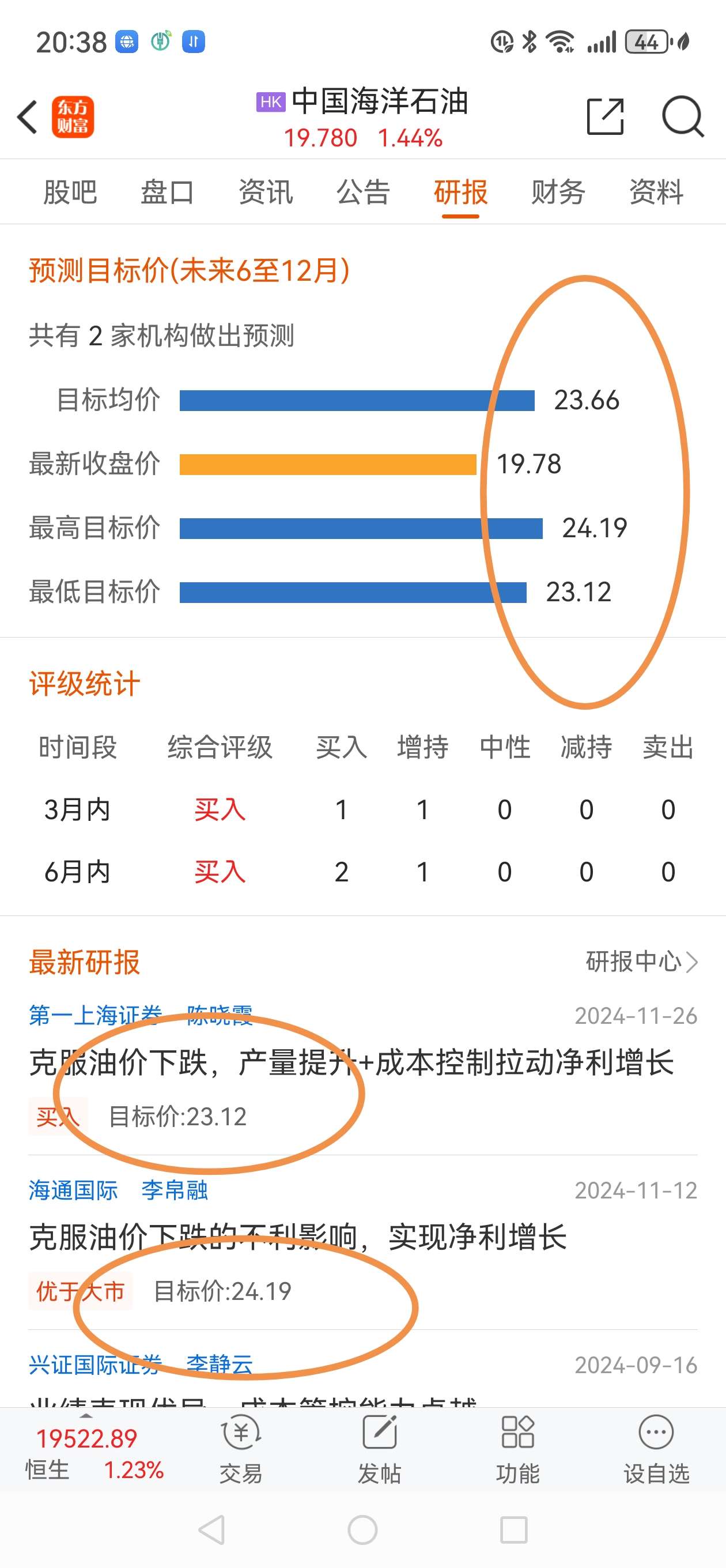 中国海洋石油上半年的股价目标24块。这个价含年报分红除权。