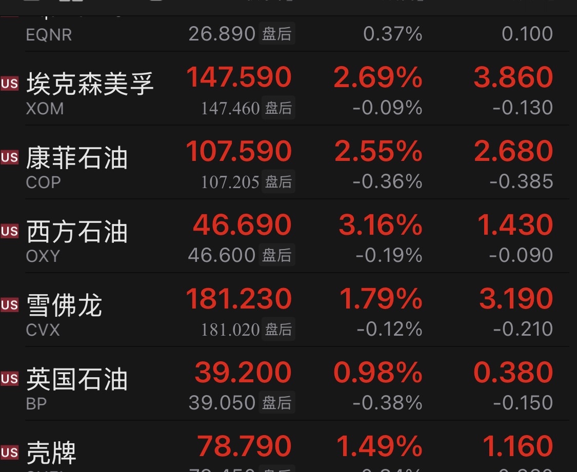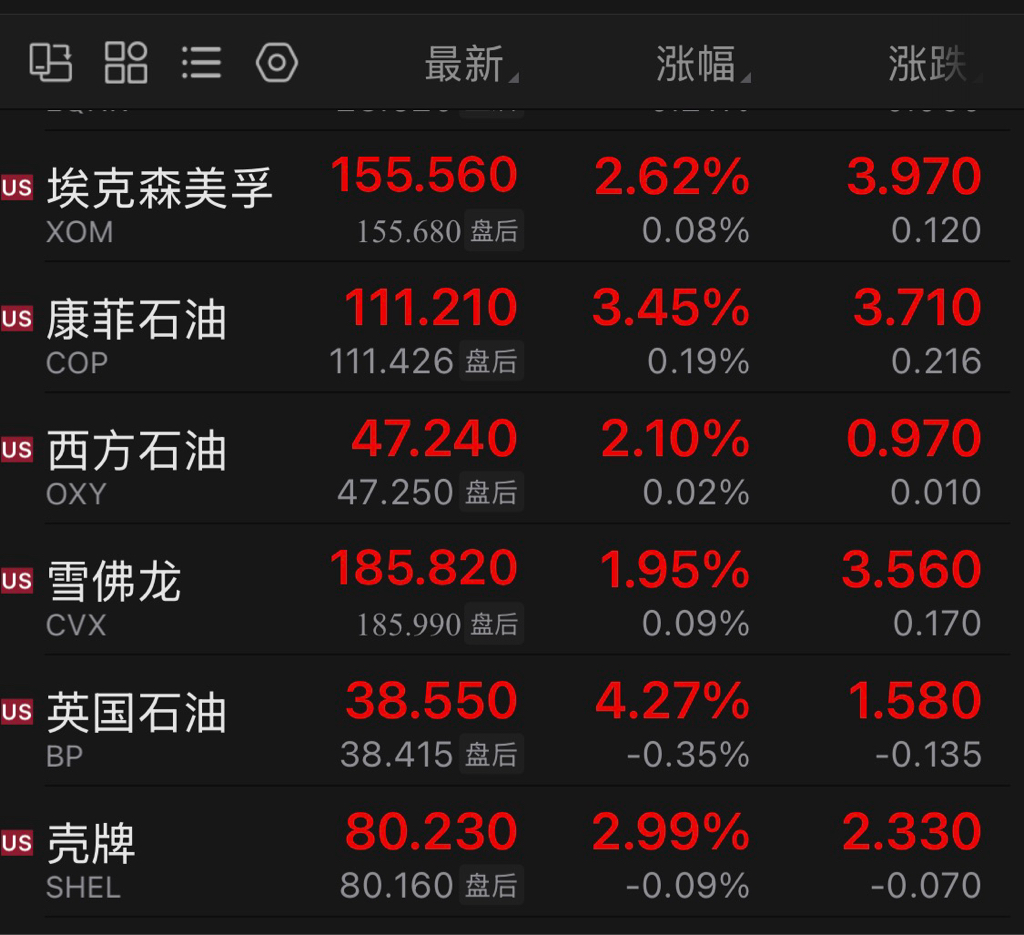 国际大油公司连续两日涨幅再次远远跑赢中海油