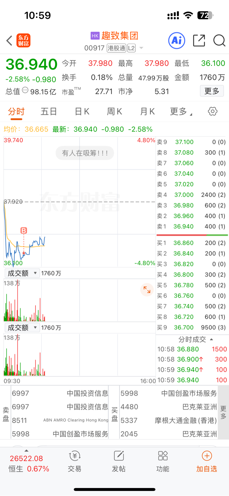 $趣致集团(HK|00917)$ 加仓五万总的持仓只有28万块!这种股只能轻仓试错!
