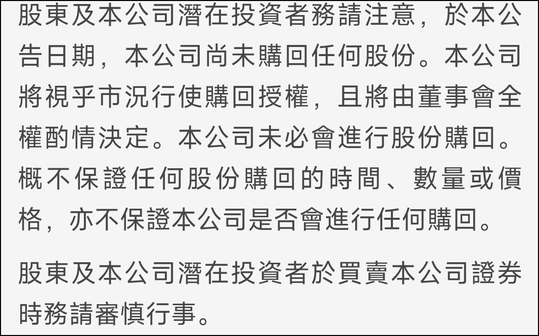 $趣致集团(HK|00917)$ 666,未必会进行股份回购,合着也得看价格是吧