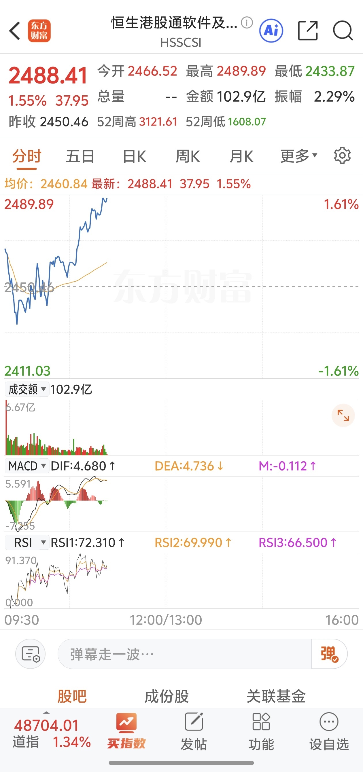 上午大震荡洗筹吸筹,资金大举进场,下午拉到最高位置收盘,恒指好的话涨10%以上,