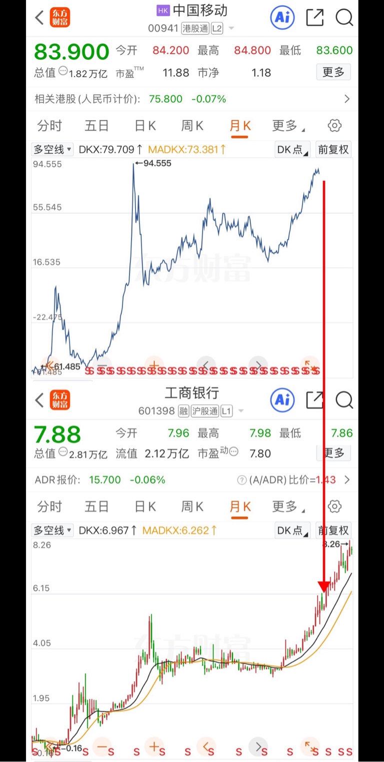 $中国移动(HK|00941)$ 中国移动看趋势至少得到120+以上,相当于工商银行突破前高回调的时候