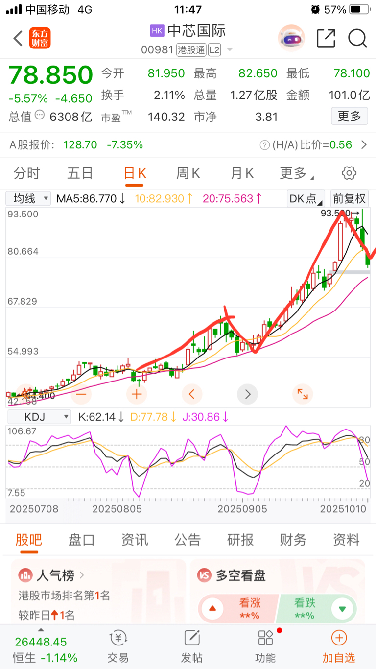 $中芯国际(HK|00981)$ 线画好了,自己体会