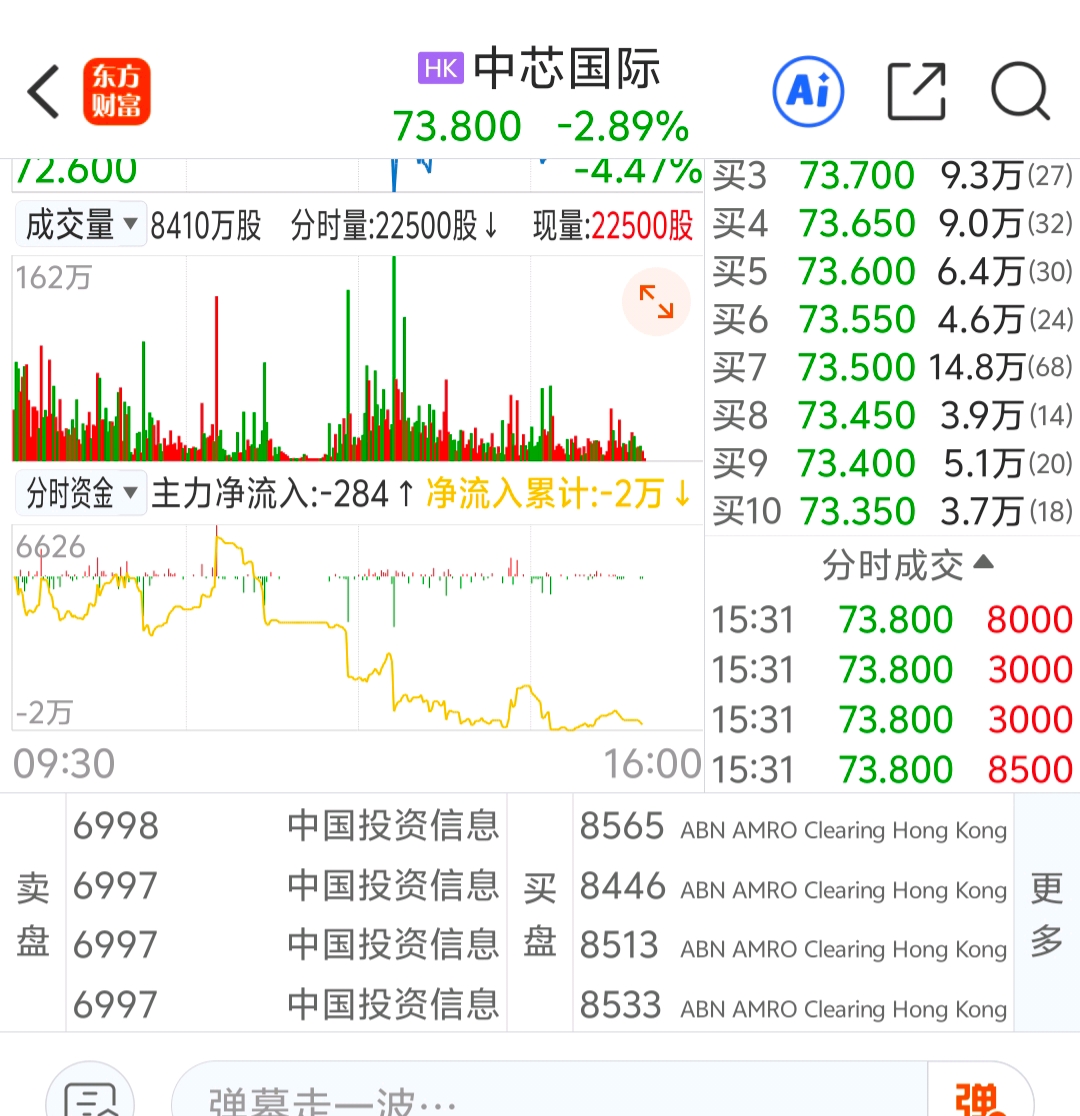 $中芯国际(HK|00981)$ 外资持续看好买入,港股通持续砸盘,自己人中间有h奸