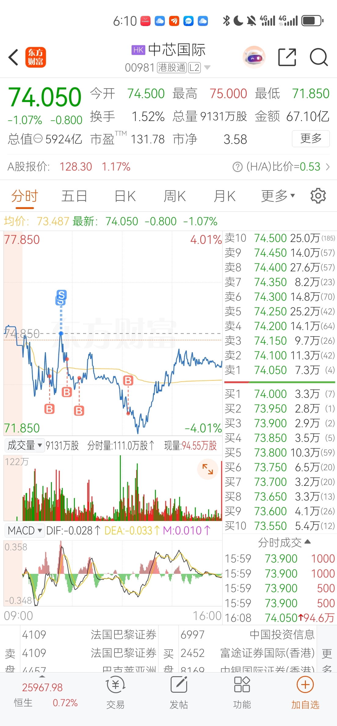 $中芯国际(HK|00981)$ 下跌只能靠做T赚钱