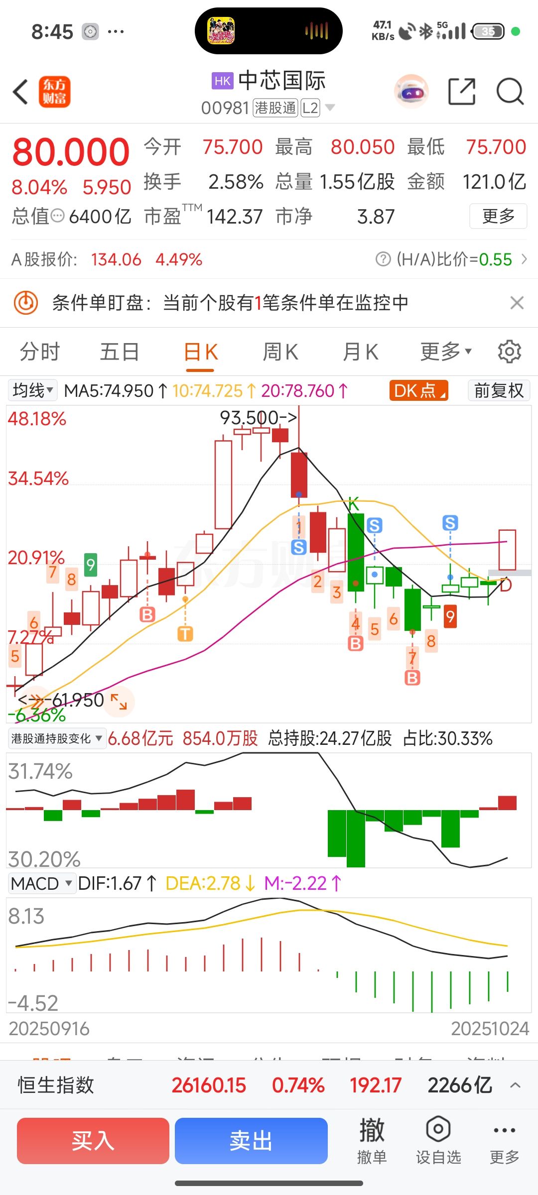 1.中芯国际如果单纯看k线走势,本来应该继续回调一波,但受政策影响雄起,无法预测雄起时间和力度。2.被寒武纪拖累下跌概率大,寒武纪被高估:当前估值(PE/PB/PS)远超行业及自身基本面,短期回调风险极高。若寒武纪下跌,中芯国际可能因行业情绪短期承压,但跌幅有限且独立性显著。@妙想 @中芯国际