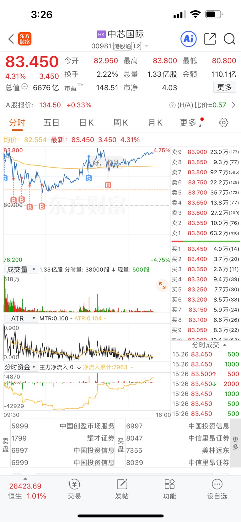 $中芯国际(HK|00981)$ 太无聊了,满仓的我只能每天T100万出来玩了,应该也够手续费
