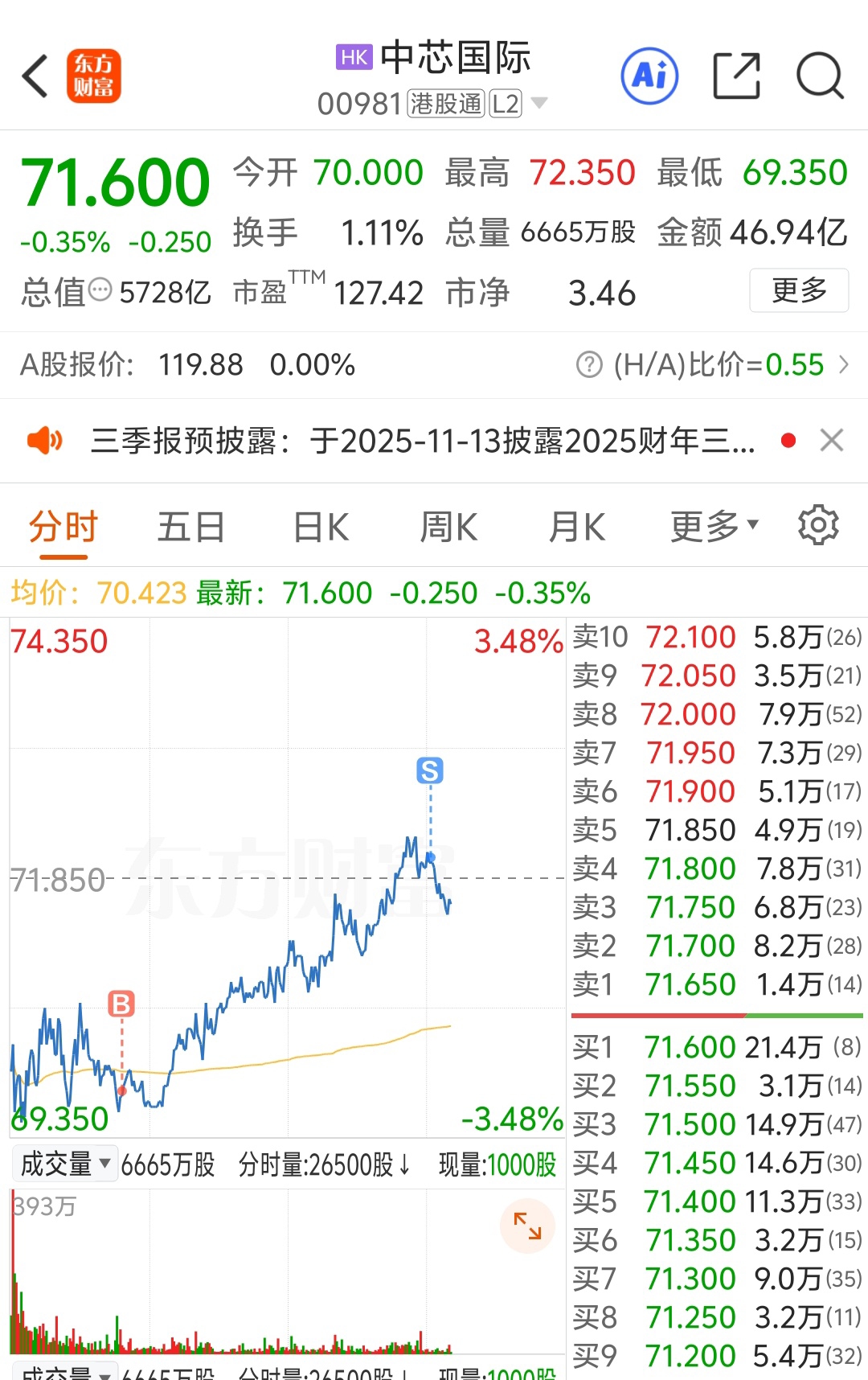 $中芯国际(HK|00981)$ 你敢跌我就敢加仓,拉高就出