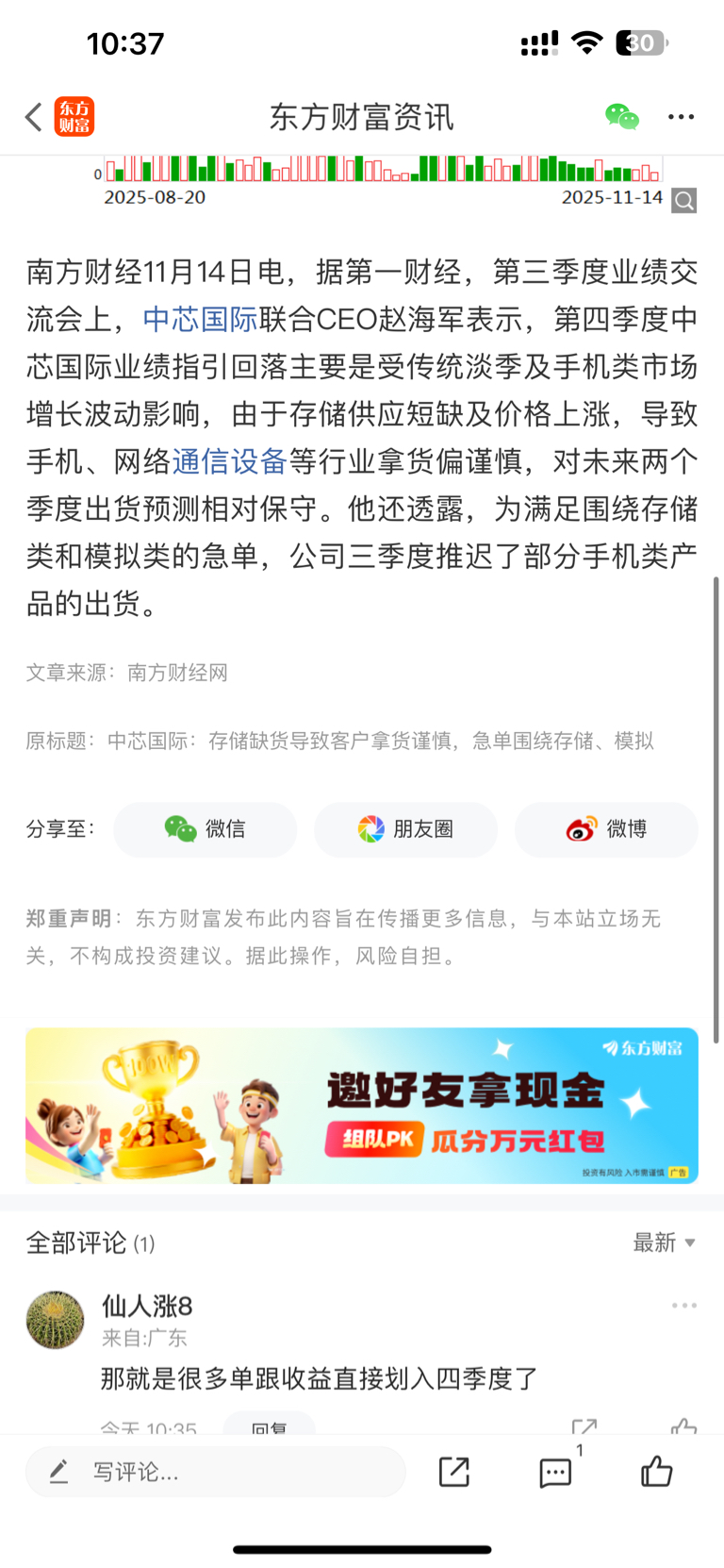 $中芯国际(HK|00981)$ 这个是留了一部分利润直接给四季度了