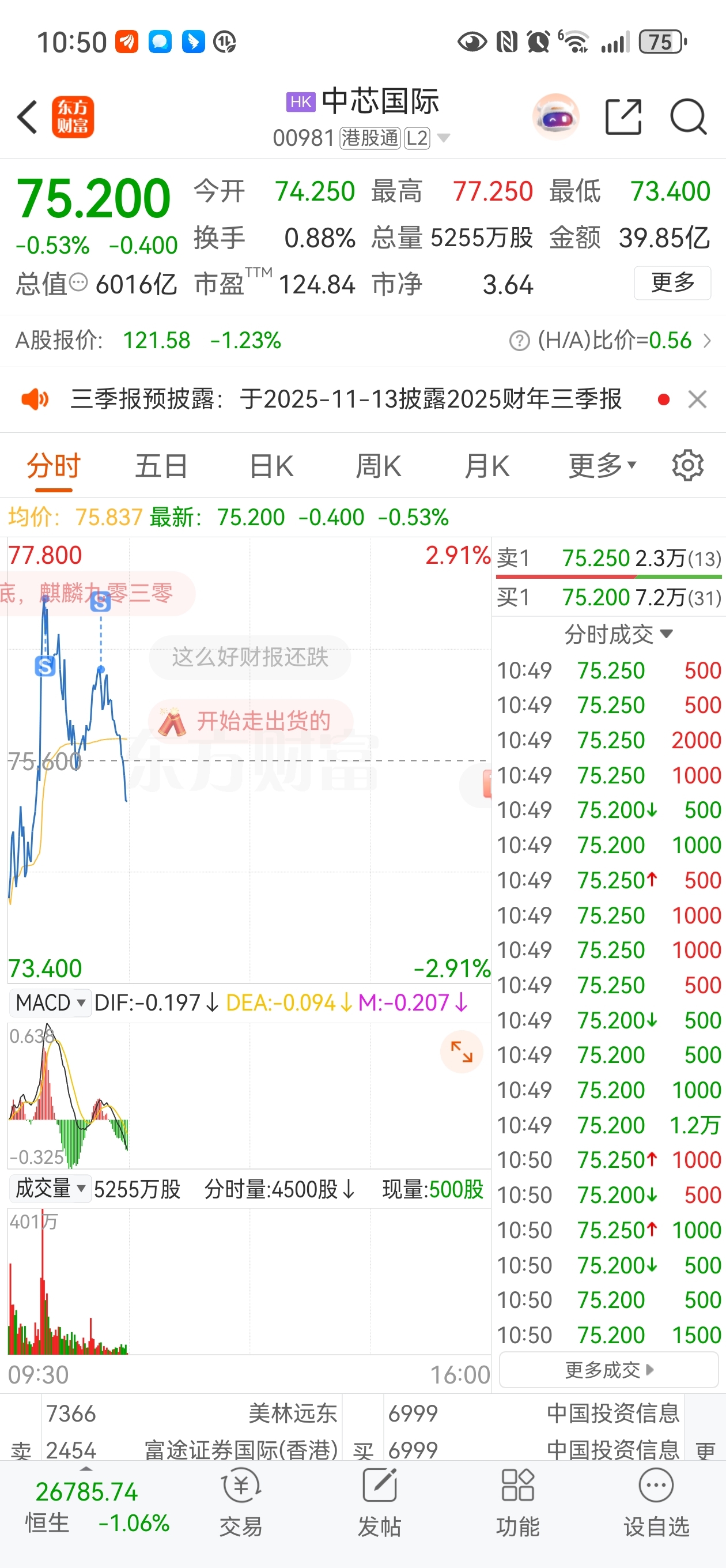 $中芯国际(HK|00981)$ 全卖了,下午接