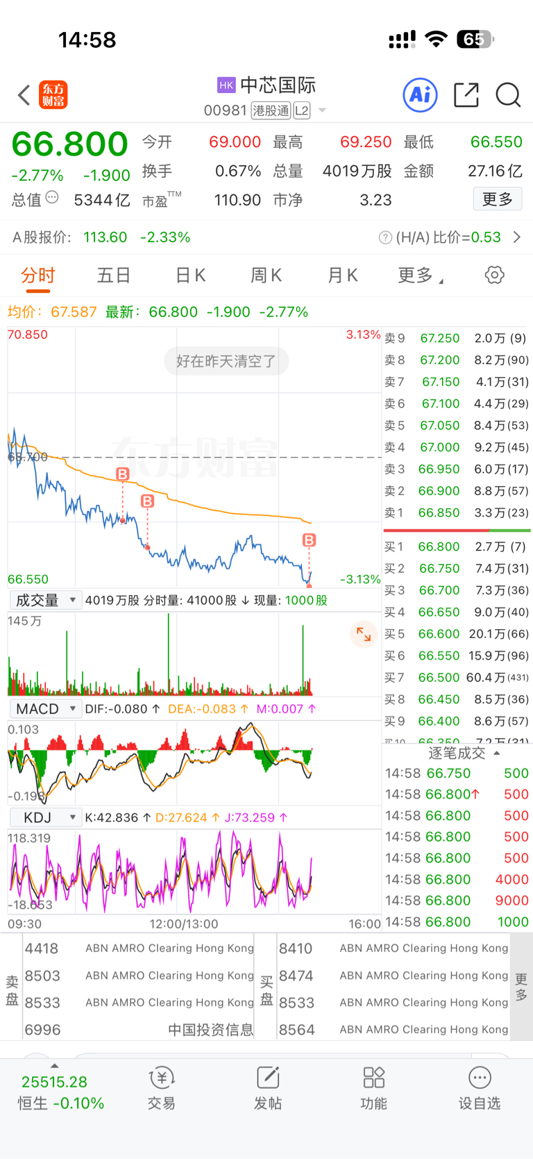 $中芯国际(HK|00981)$ 都在说抄底,谁真进来了,共进退。