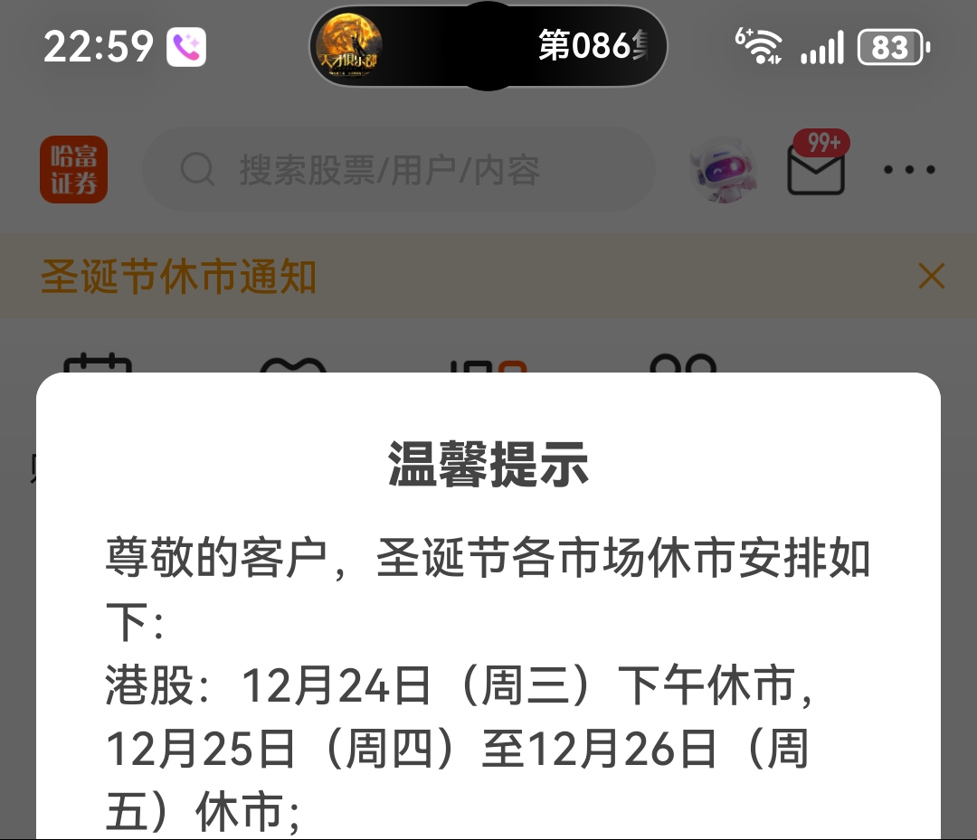 只有12月24日上午的交易机会,接下来两天半交易日是休市的。好好把握